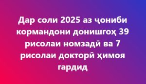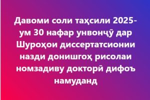 Муфассал “ДДБ ба номи Носири Хисрав: Шумораи гирандагони дипломи аъло афзудааст” »
